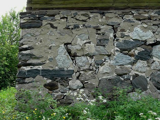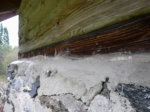 Muurin ja hirren rajaan tehtiin viisto saumaus, jotta vesi ei pääse kivimuurin