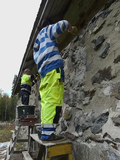 Kivimuurin saumaaminen on hidasta ja kärsivällisyyttä vaativaa työtä: päivässä