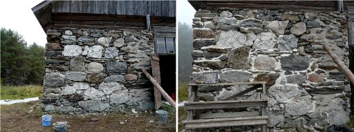 valmistui muutama neliö. Kuvassa oikealla on vanhoja laastipaikkauksia, joissa