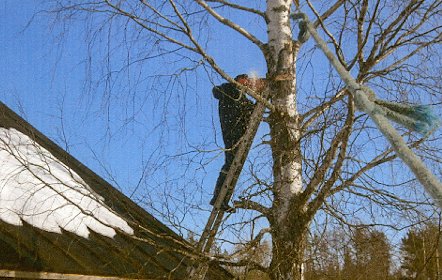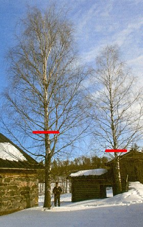 Ennen työn aloittamista – koivun vieressä Pentti Rantalainen (pituus 177 cm).